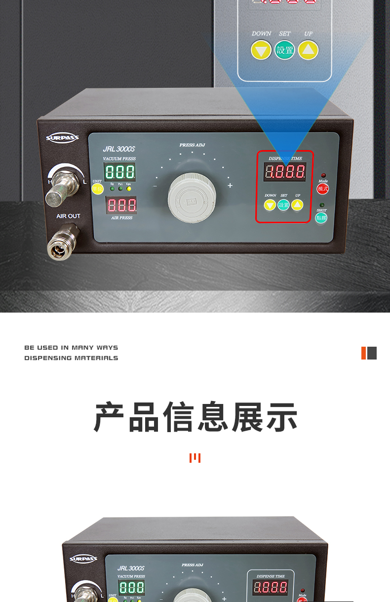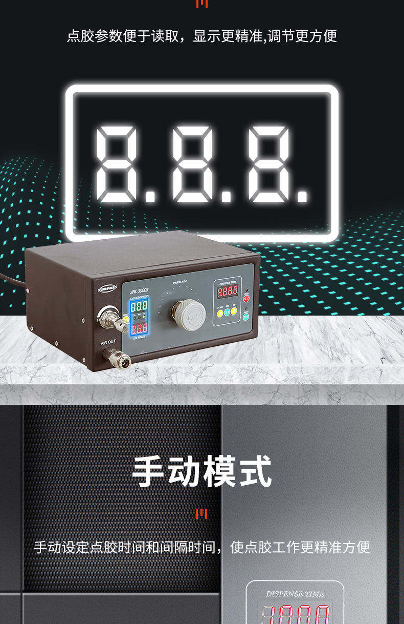 吐膠時間調(diào)節(jié)范圍:0.001s-99.99s