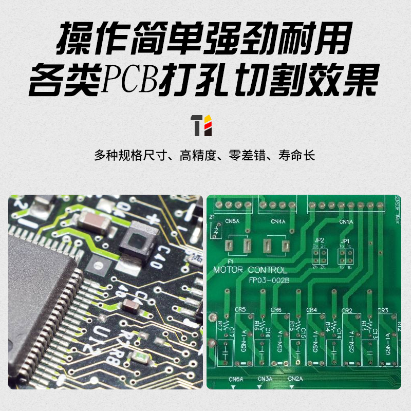 快速將拼板生產的PCB分割成獨立的電路板,加工LTCC,加工半固化片,在FR4上鉆孔、鉆微孔、激光直接成型電路圖形等。紫外激光與其他加工方式或其他激光相比,切割邊緣更整齊,外形尺寸精度更高。產品加工模式無間隙切換,只需點擊軟件菜單導入新加工項目即可。